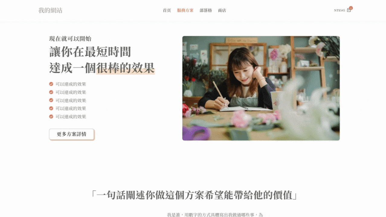 我們的模板網站可以搭配使用購物車、課程系統、銷售頁、部落格等各種功能,讓你用平易近人的價格,靠自己就可以打造擁有完整功能的網站。
